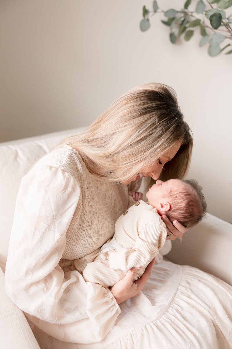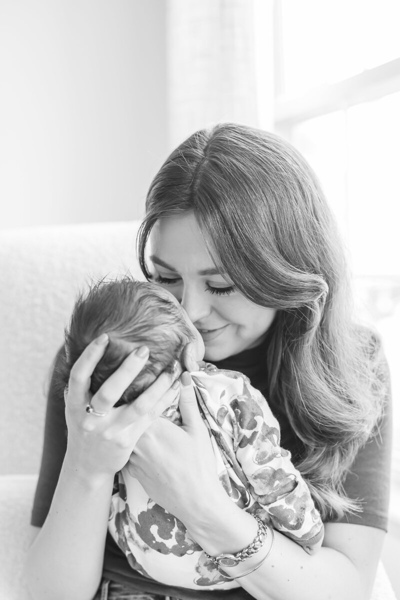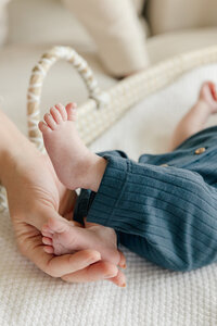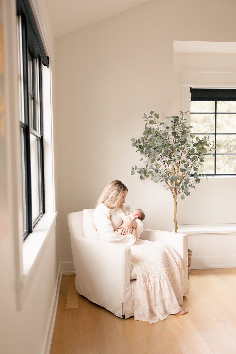 Prior to your little one’s arrival, I recommend paying attention to when the natural light in your home is even and bright. Typically this is in the morning, between 9am-1pm, but given the direction of your windows may also be in the afternoon. Since I am a natural light photographer, it is important that we select a time that will give us the most beautiful light to work with. I do bring flashes with me in case we need them, though!