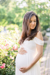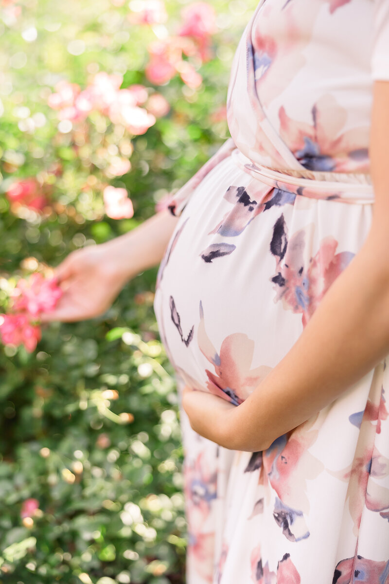 Long dresses (midi or maxi) are highly flattering for a pregnant mama. I tend to recommend dresses that are a little flowy over "body con" as the movement looks so beautiful on camera.