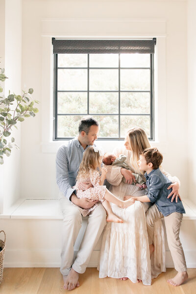 During the session I will offer suggestions for basic posing (for example, everyone snuggle on the bed or couch) and occasionally ask you all to look at the camera, but largely seek to capture candid moments of you interacting together. So feel free to chat, tickle, tell jokes, etc. and keep it fun! When in doubt, just look at or snuggle your baby!