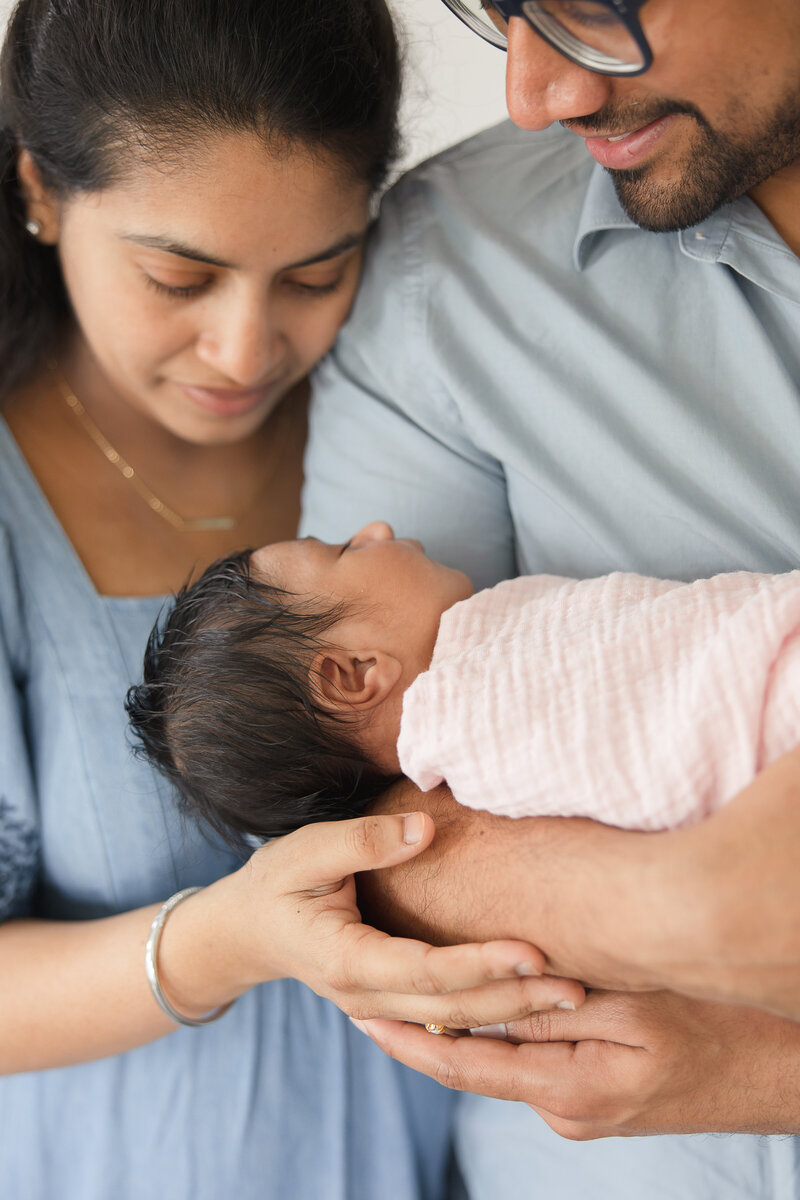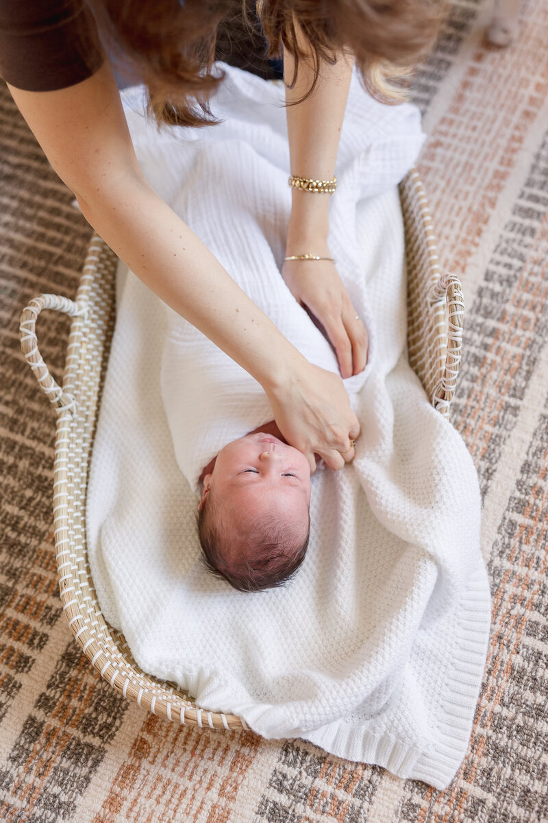 I recommend brining a large, neutral colored blanket that can fit the whole family (I also can provide one!). I also bring a Moses basket, which photographs beautifully outside. Bring a few swaddles, change(s) of clothes, and any items your baby or family will need during the session.